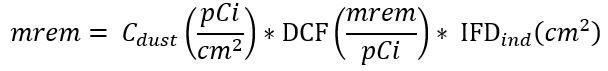 Some users have questioned why the proportion of dose posed by dust ingestion for external exposure with BDDCs is much greater than the proportion of dose from soil ingestion for external exposure with DCCs. The BDCC ingestion values are based on the transfer of dust to a receptor's hand and subsequent transfer of the dust from the hand to the receptor's mouth. The BDCC ingestion values are reported in units of square centimeters (area) and collected by surface wipe samples. The DCC ingestion values are based on the incidental ingestion of soil throughout the time period, regardless of the intake method. The DCC ingestion values are reported in units of grams (mass) and collected by digging and weighing samples. While the units of the ingestion BDCCs are different than the units of the ingestion DCCs, there is a correlation. If the mass of dust in an area is known, a BDCC can be converted to a DCC. This conversion factor is known as the dust mass loading factor with units of mass/area.